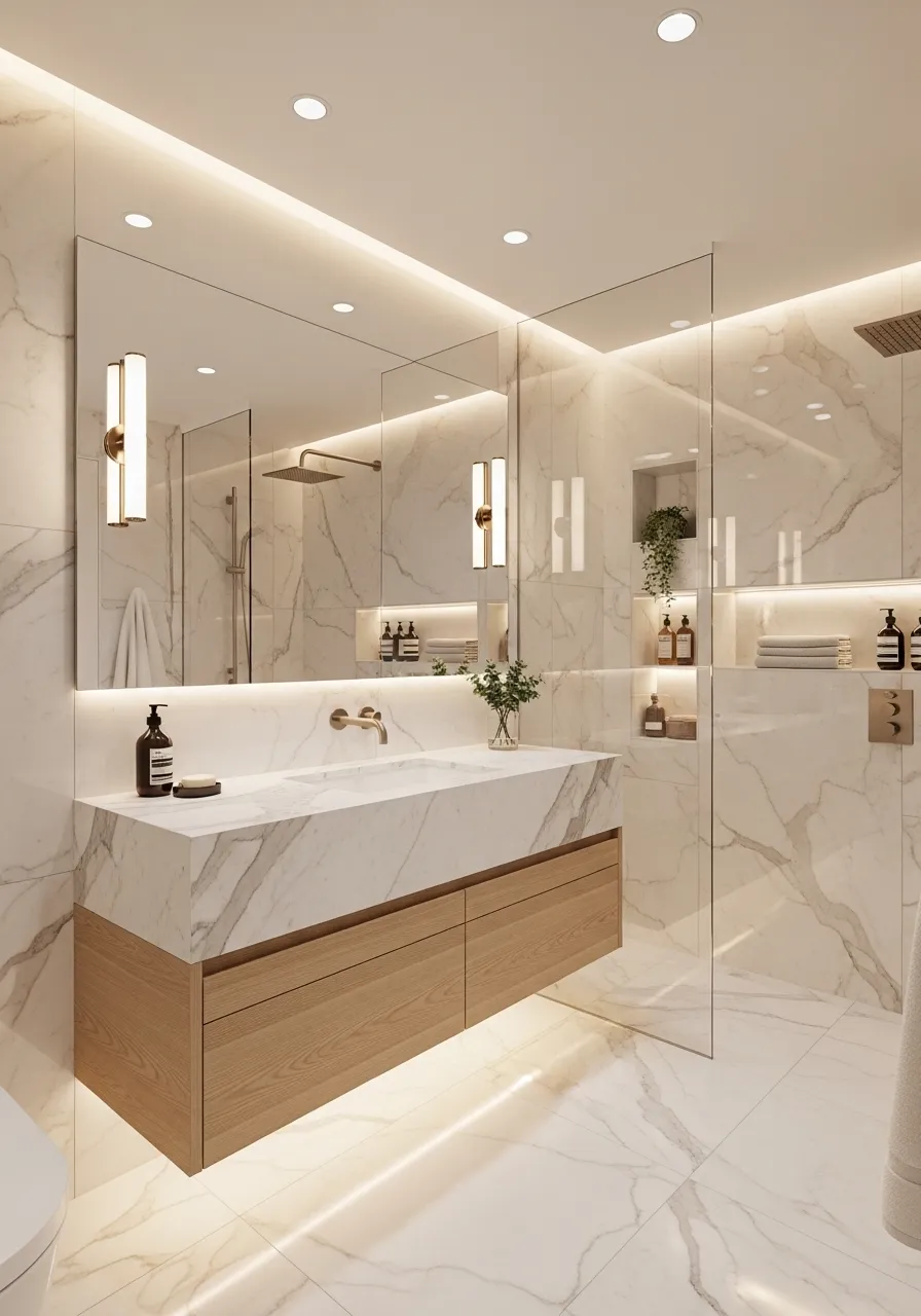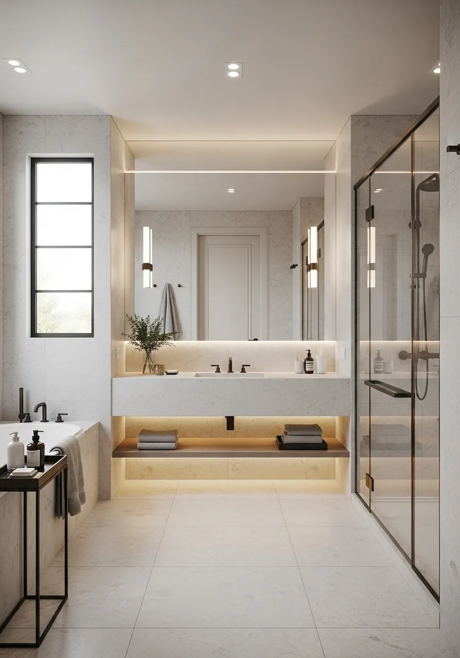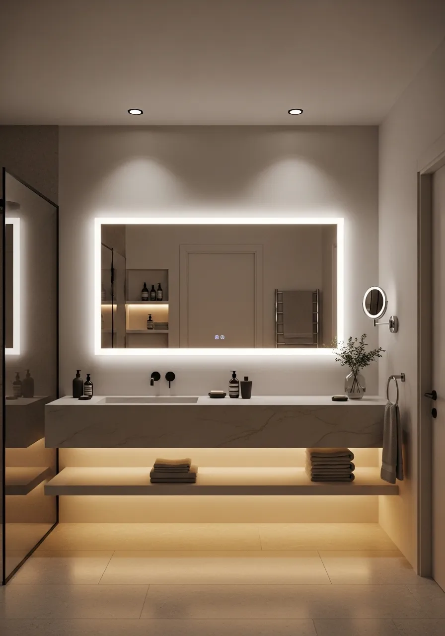8. Bathroom Lighting Ideas with LED Mirrors & Ambient Glow