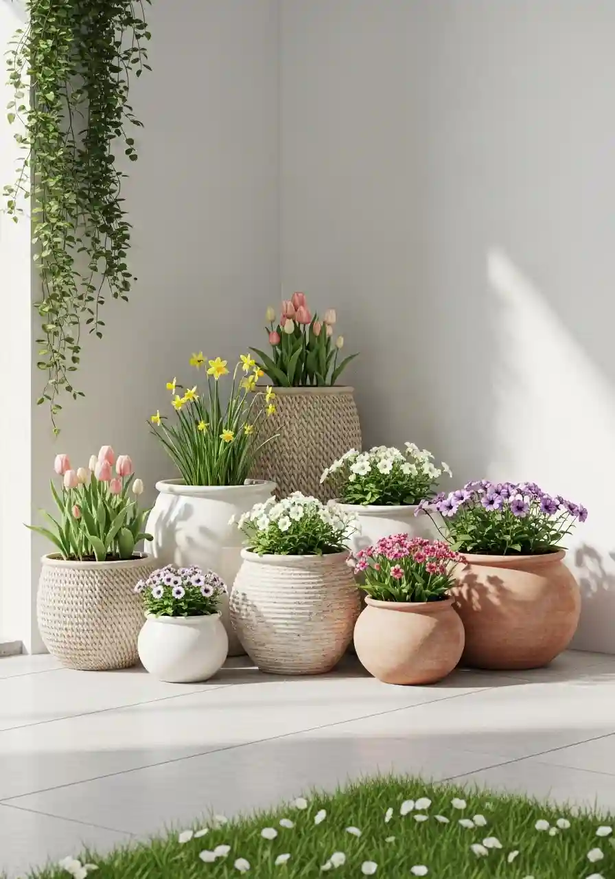 Upgrade basic pots to more stylish options. Choose materials like ceramic, terracotta, or woven textures for a natural spring look.