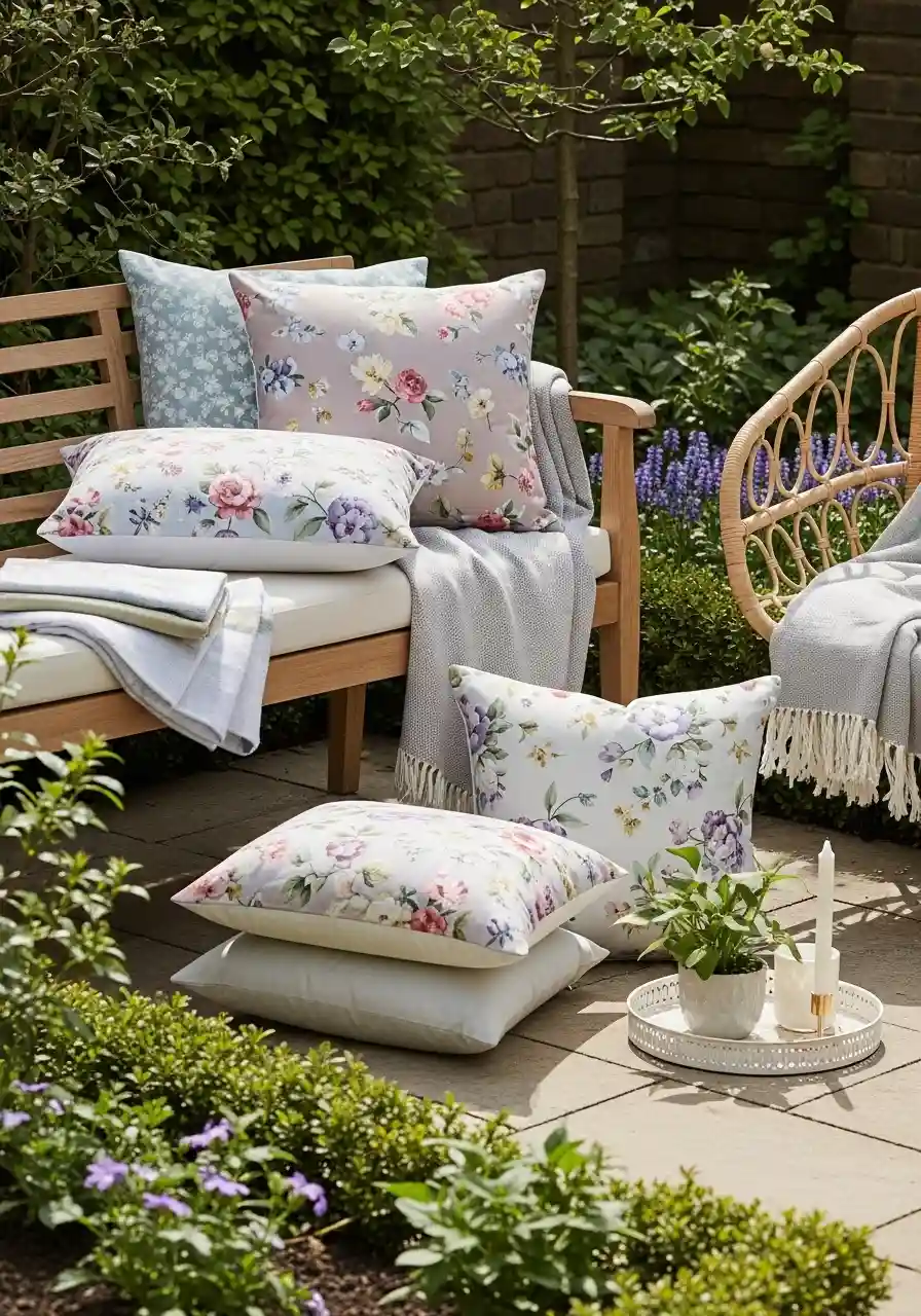 Add soft, weather-resistant cushions in light spring tones. This brings comfort and a fresh seasonal feel.