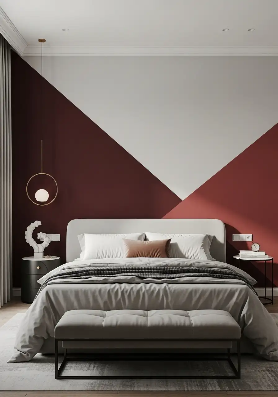 A bold accent wall can instantly transform your bedroom. Use a single wall to add a contrasting color or geometric shapes.