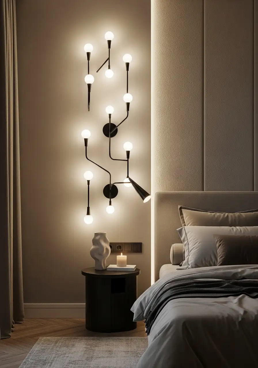 Lighting can be more than just functional. It also works as a stylish modern wall decoration for bedroom that transforms the mood instantly.