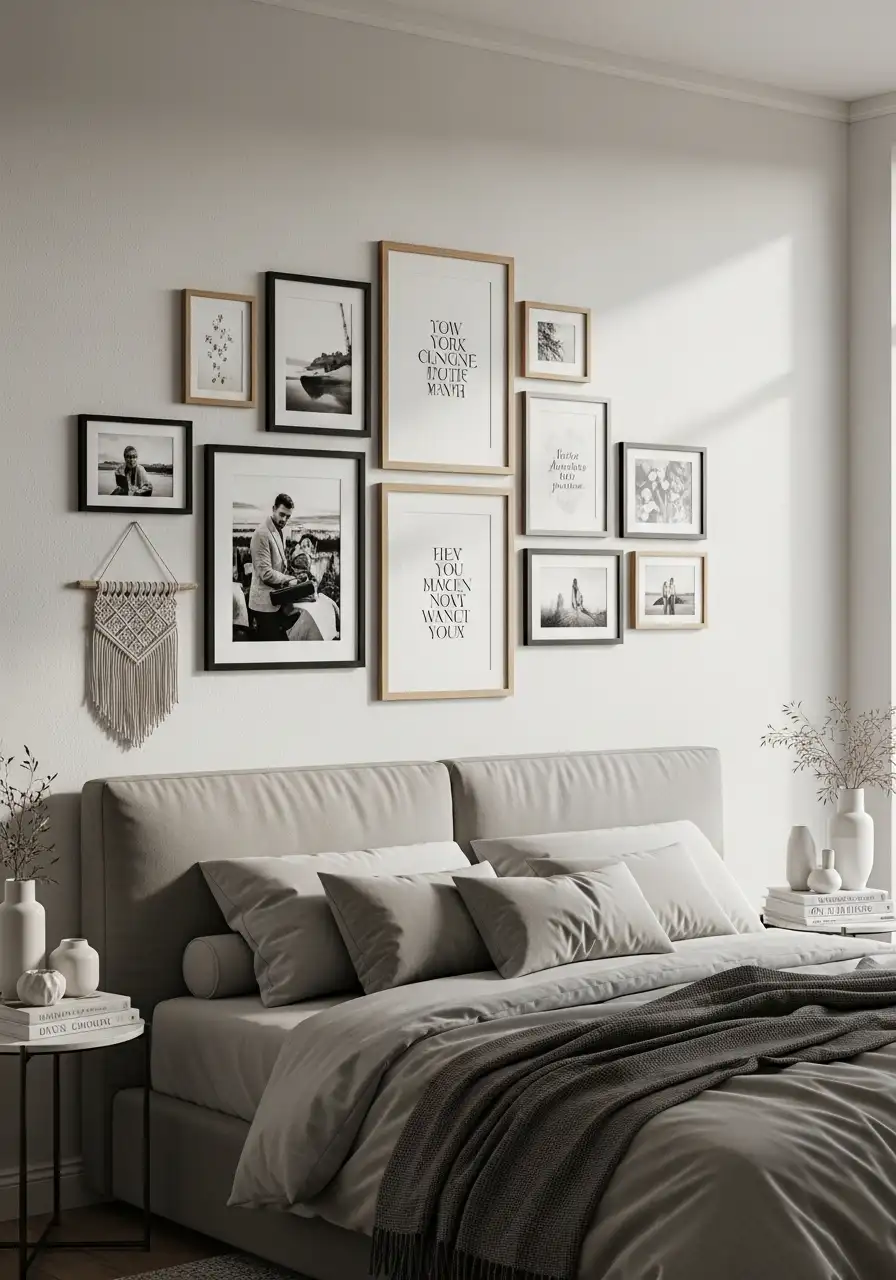 Turn a blank wall into a stunning focal point with a wall decor for bedroom gallery. Start by arranging your favorite photos, art prints, and framed quotes. This instantly adds personality and makes your space feel curated.