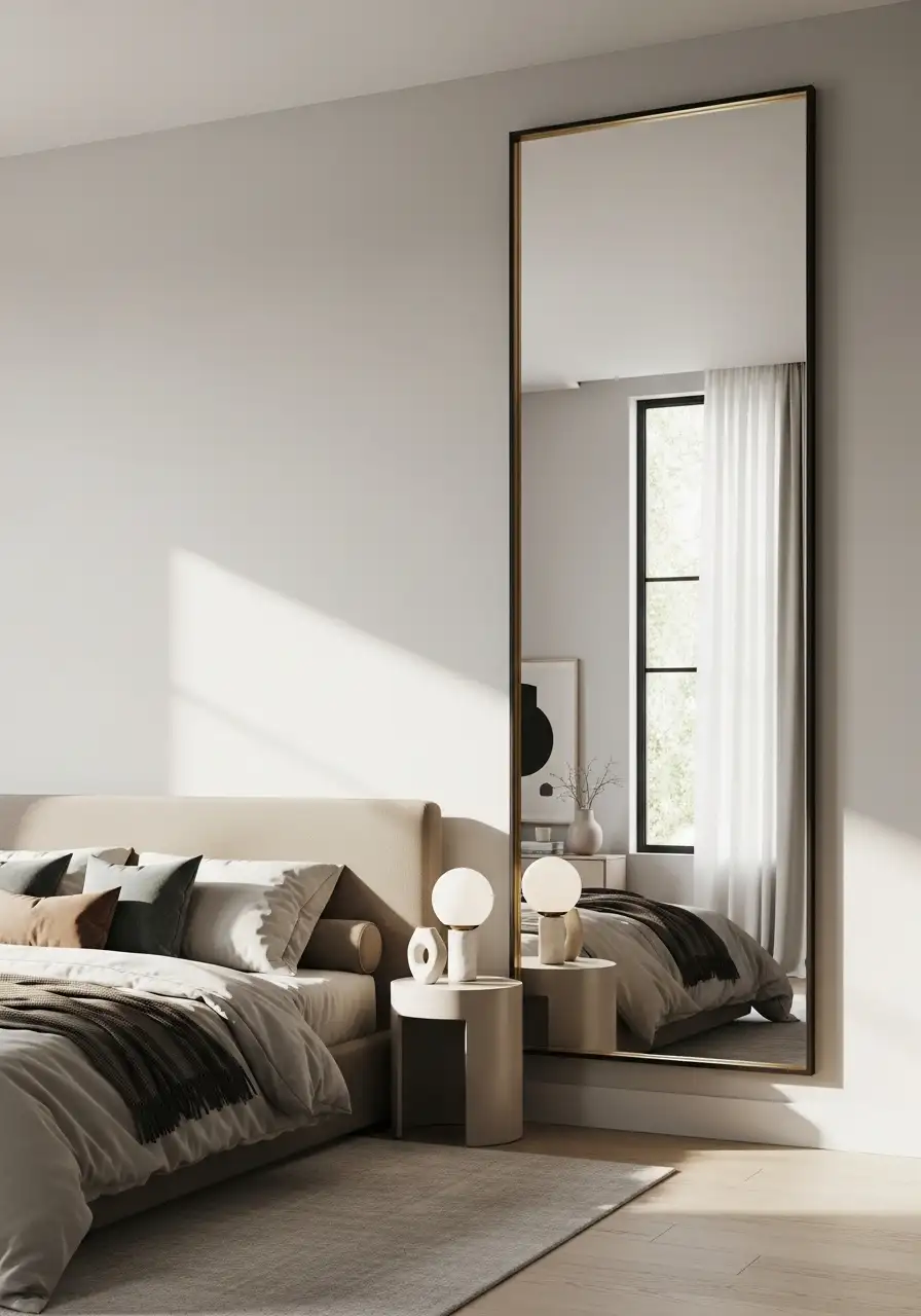 Pro Tip: Choose a modern frame or a unique shape to make your mirror a statement piece. This simple addition elevates both your walls and your bedroom style.