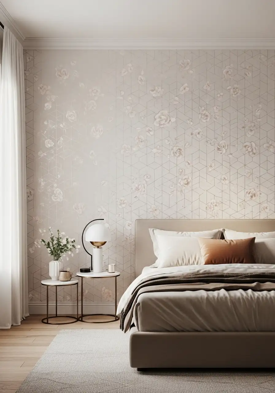 Geometric patterns, florals, or metallic finishes instantly add depth and visual interest. Choose a design that complements your bedroom’s overall style for a cohesive look.